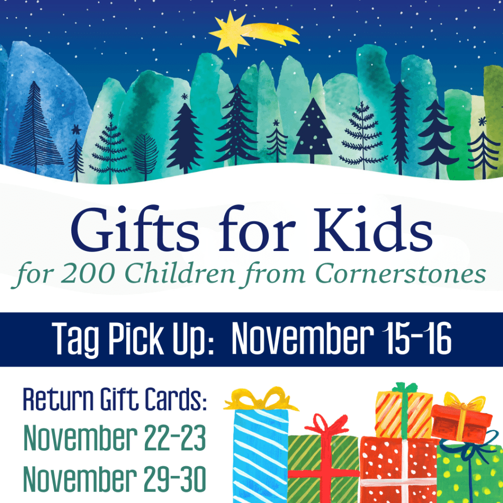 Gifts for Kids provides 200 children from Cornerstones with Christmas gifts by providing parents with gift cards. With the gift cards, parents have the dignity of shopping to select their children’s Christmas gifts.