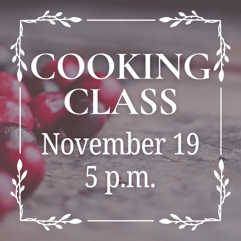 Please join us for Cooking Class on Wednesday, November 19 at 5 p.m. in the SJN Kitchen.