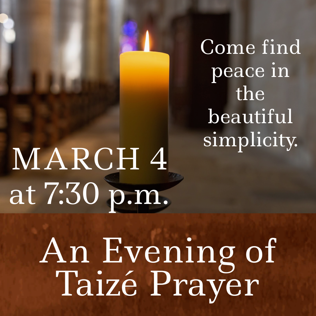 Following Mass, we will have fellowship and cheese pizza in the Auditorium. All are welcome!
