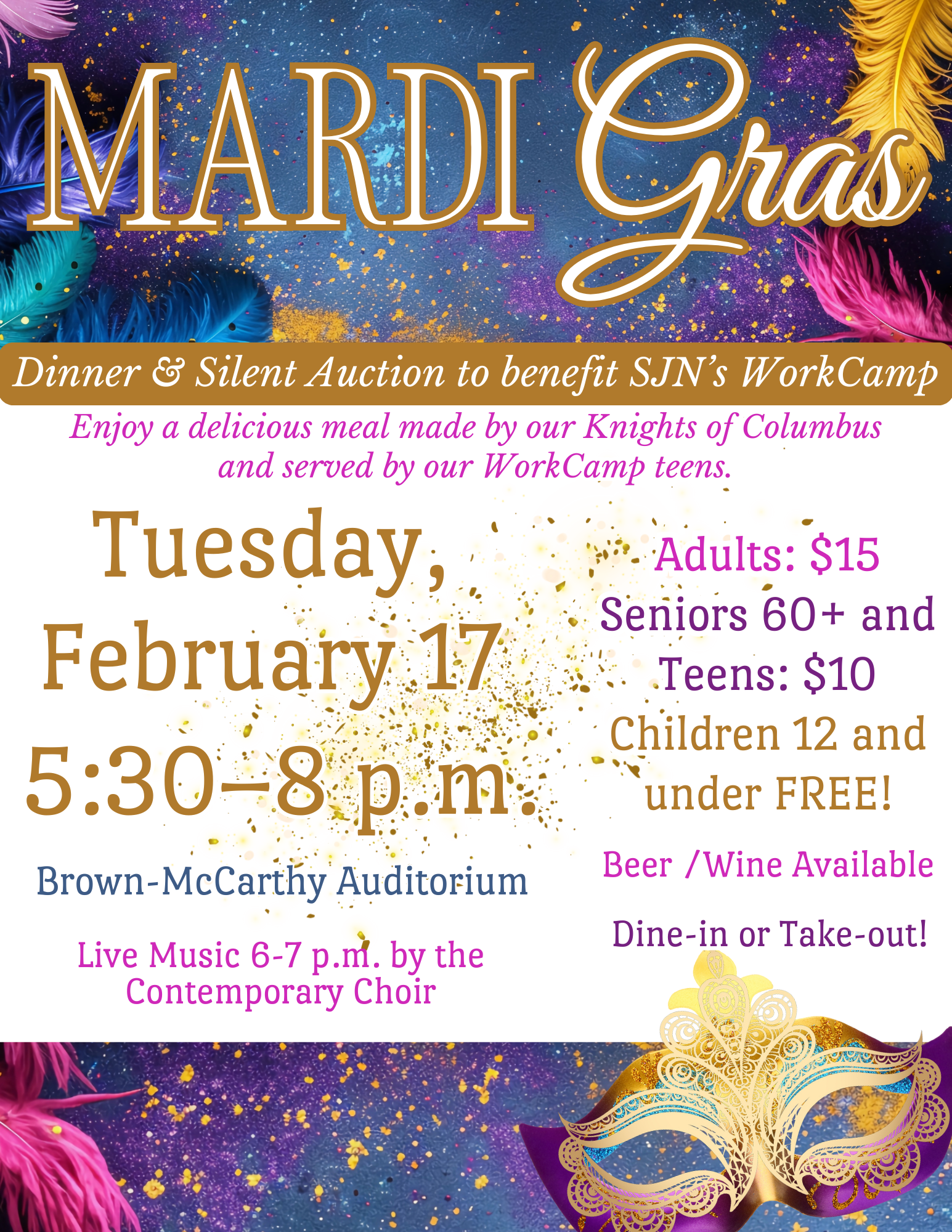 Please join us on Tuesday, February 17 for our fundraiser to benefit SJN teens attending WorkCamp 2026 this summer.